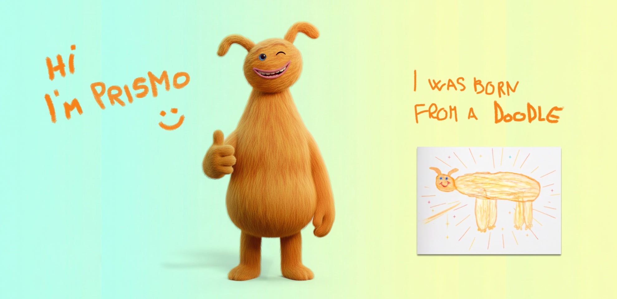 Soffice, un po’ impacciato, curioso e arancione: Prismo è il cuore della storia.